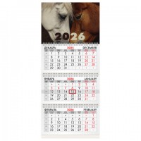 Календарь квартальный 2026 BRAUBERG, "Лошадь" 3 блока, 295х682 мм