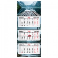 Календарь квартальный 2026 BRAUBERG, "Горное озеро", 1 блок, 295х600 мм