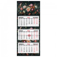 Календарь квартальный 2026 BRAUBERG PREMIUM, "Цветы", 3 блока, 325х760 мм