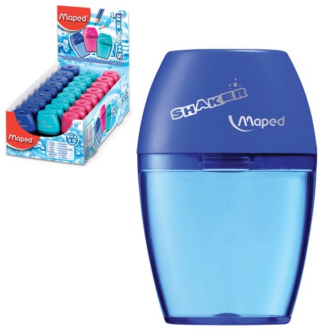 Точилка с контейнером повышенной вместимости MAPED (Франция) "Shaker", 1 отверстие, пластик, ассорти