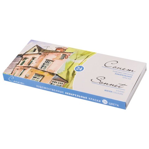 Краски акварельные художественные "Сонет", 24 цвета, кювета 2,5 мл, картонная коробка, 3541139