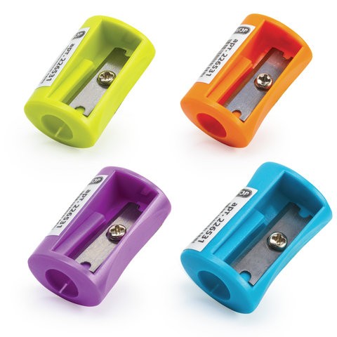 Пластиковая точилка предназначена для затачивания цветных и чернографитных карандашей. Качественное стальное лезвие обеспечивает лёгкую и равномерную заточку. Поставляется в нескольких вариантах цвета (без возможности выбора).