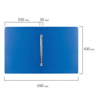 Папка на 4 кольцах BRAUBERG "Стандарт", А3, 30 мм, 800 мкм, пластик, синий