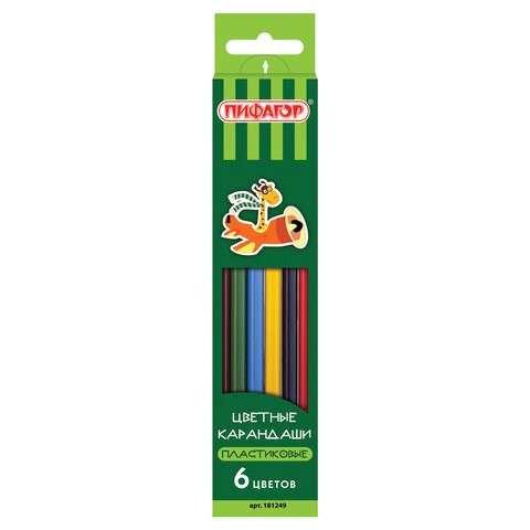 Карандаши цветные ПИФАГОР "Жираф", 6 цветов, пластиковые, классические заточенные