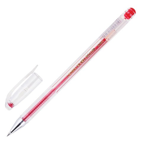 Ручка гелевая CROWN "Hi-Jell", узел 0,5 мм, пластик, красный