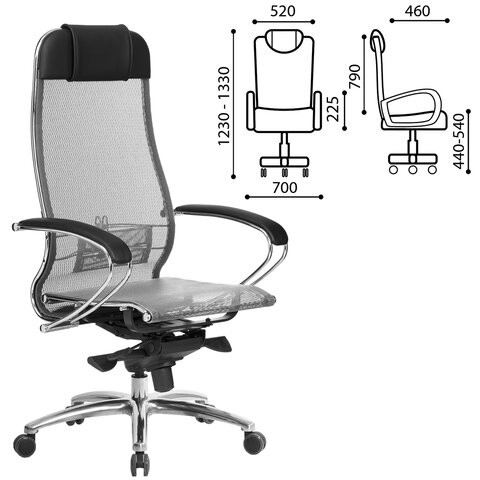 Кресло руководителя МЕТТА "Samurai S-1.04", сетка/металл, серый