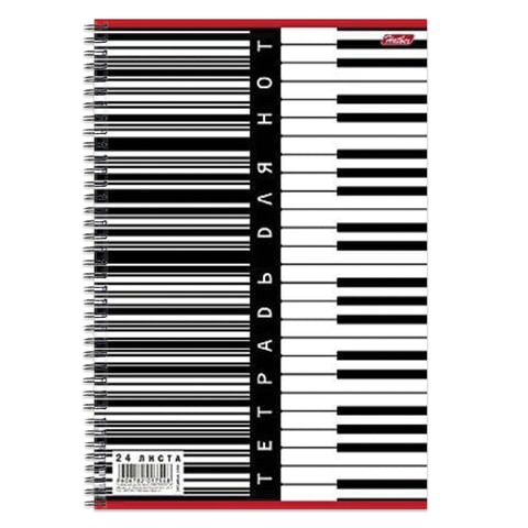 Тетрадь для нот HATBER "Клавиши", А4, 24 л, спираль, вертикальная, мелованный картон, черно-белый