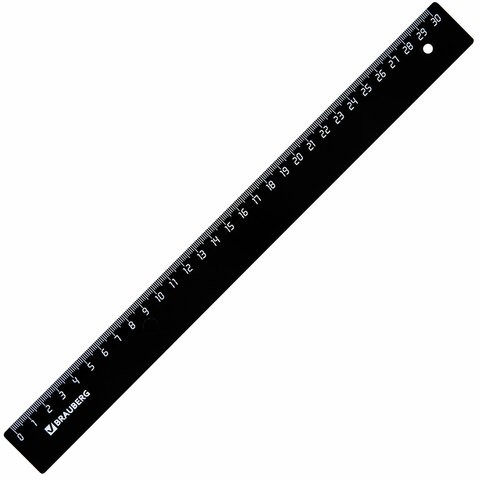 Линейка BRAUBERG, 30 см, пластик, черный