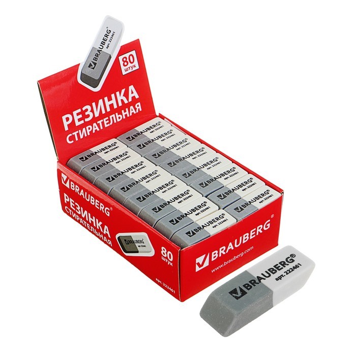 Резинка стирательная BRAUBERG, 41х14х8 мм, серо-белый