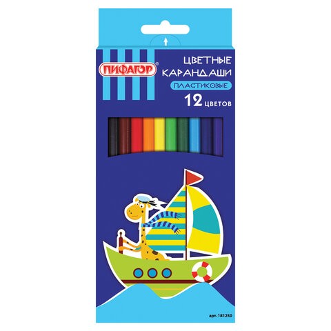 Карандаши цветные ПИФАГОР "Жираф", 12 цветов, пластиковые, классические заточенные, 181250