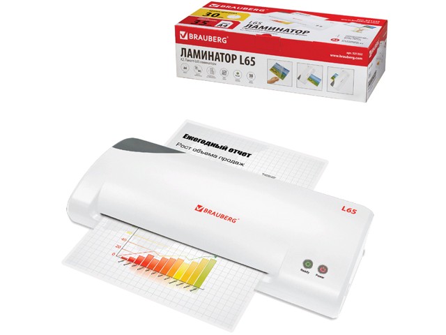 Ламинатор BRAUBERG L65 идеально подходит и для дома, и для большого офиса. Быстро прогревается всего за 30 секунд и ламинирует лист формата А4 за 35 секунд. Световой сигнал готовности ламинатора, прост в управлении. Стильный белый корпус.