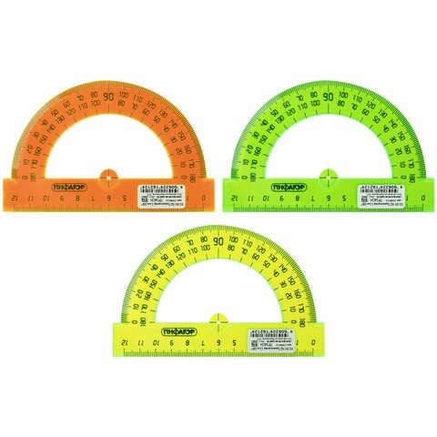 Транспортир 12 см, 180 градусов, ПИФАГОР, прозрачный, неоновый, ассорти