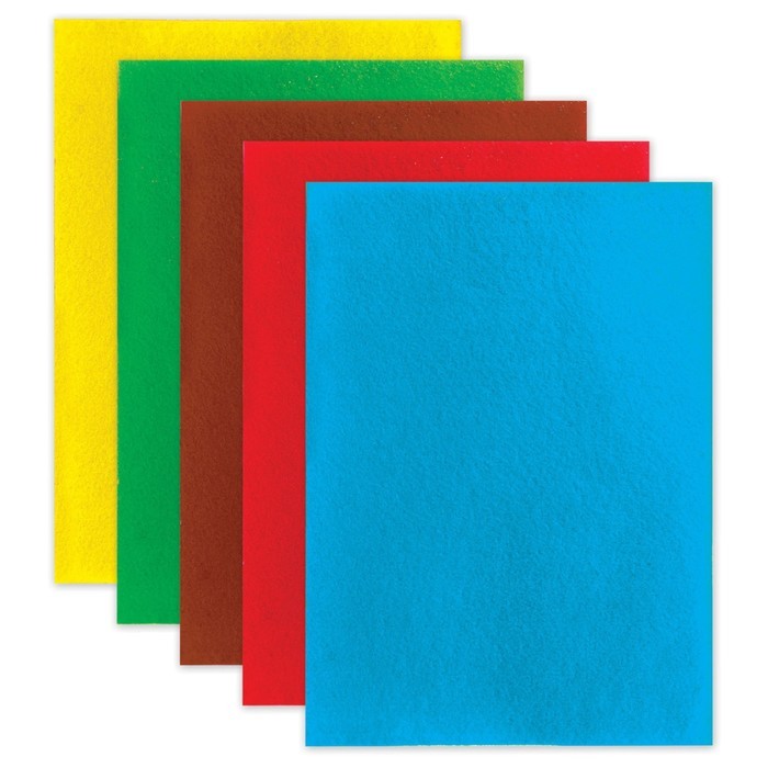 Цветной фетр для творчества, А4, 210х297 мм, BRAUBERG, 5 листов, 5 цветов, толщина 2 мм, 660620