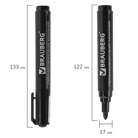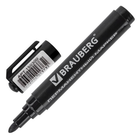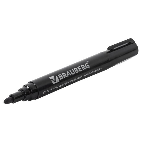 Маркер перманентный BRAUBERG "Classic", круглый наконечник 3 мм, черный