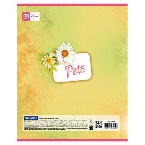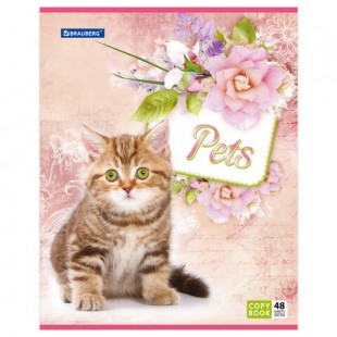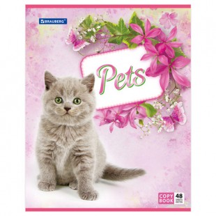 Тетрадь BRAUBERG ЭКО "Pets", 48 листов, клетка, скрепка