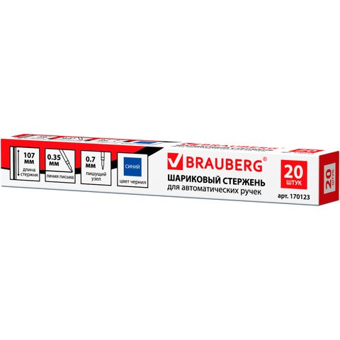 Стержень шариковый с ушками BRAUBERG, 107 мм, узел 0,7 мм, синий
