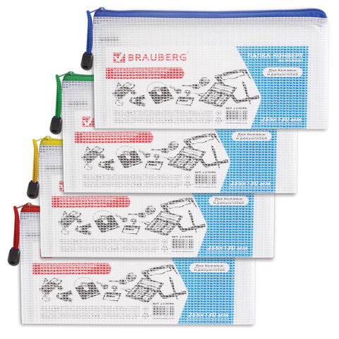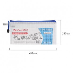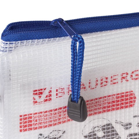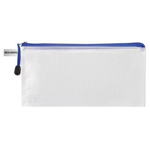 Папка-конверт на молнии BRAUBERG "Segment", 255х130 мм, ПВХ, сетка, прозрачная, 223888