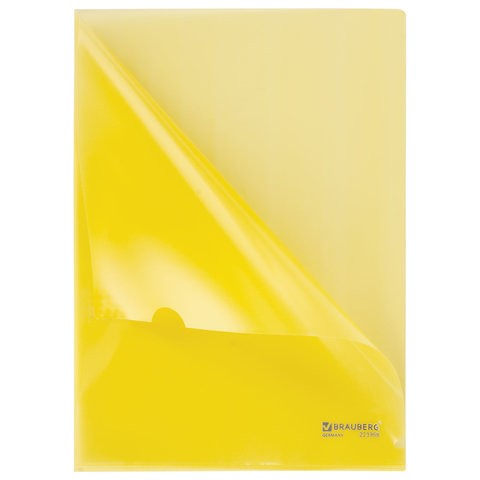 Папка-уголок BRAUBERG, А4, 150 мкм, прозрачный желтый