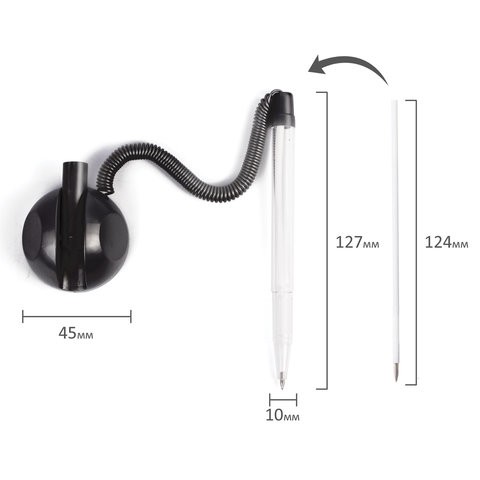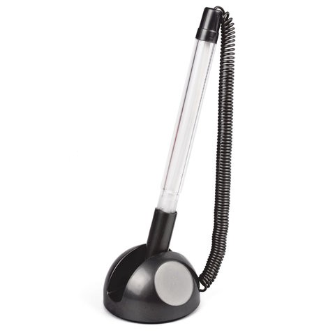 Ручка шариковая настольная BRAUBERG "СТЕНД-ПЕН", на пружинке, с клейким основанием, цвет корпуса черный, синяя, 141351