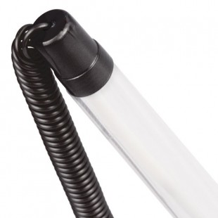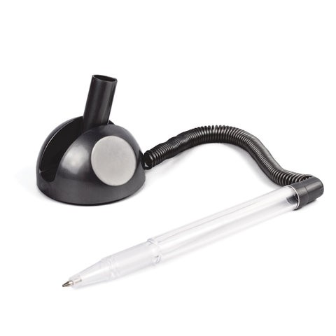 Настольная шариковая ручка на пружинке и подставке с регулируемым углом наклона. Подставка легко фиксируется на любой ровной поверхности.