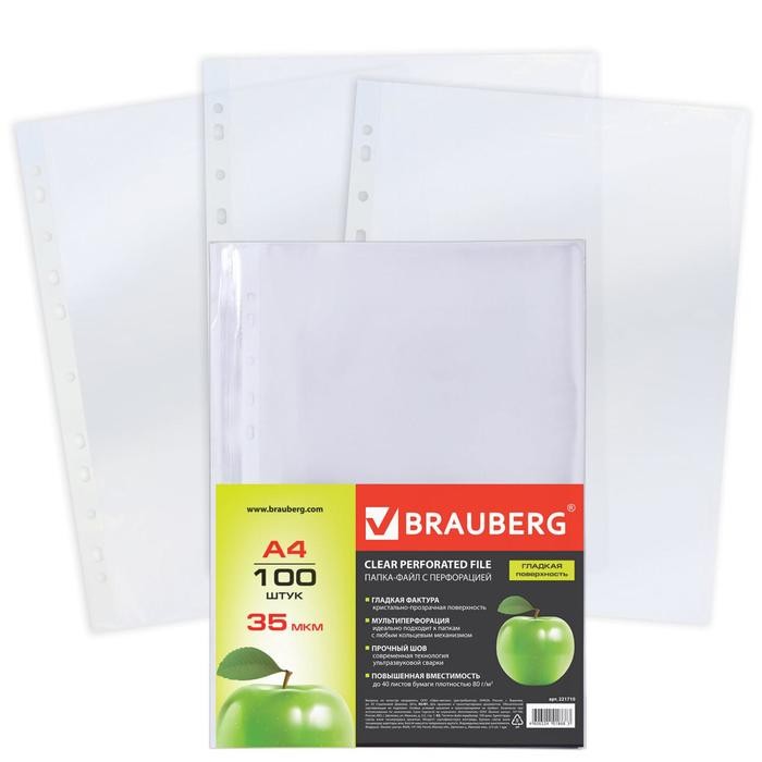 Перфорированные папки-файлы BRAUBERG предназначены для хранения документов и подходят для подшивки в папки с любым кольцевым механизмом и скоросшивателем.