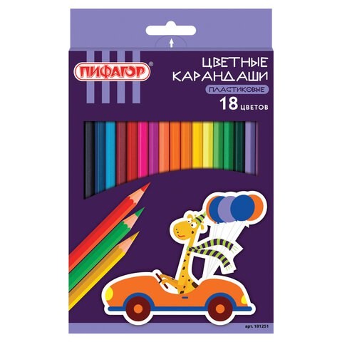Карандаши цветные ПИФАГОР "Жираф", 18 цветов, пластиковые, классические заточенные, 181251