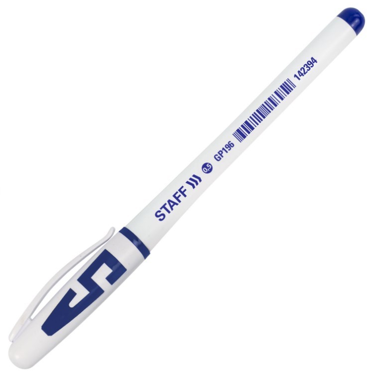 Ручка гелевая STAFF, грип, игольчатый узел 0,5 мм, синий