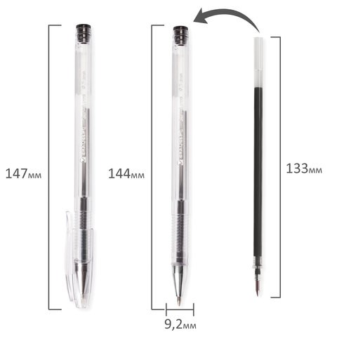 Гелевая ручка с колпачком. Рифление корпуса в области захвата для удобства письма. Сменный стержень.