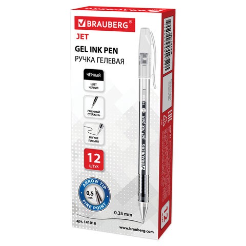 Ручка гелевая BRAUBERG "Jet", узел 0,5 мм, черный