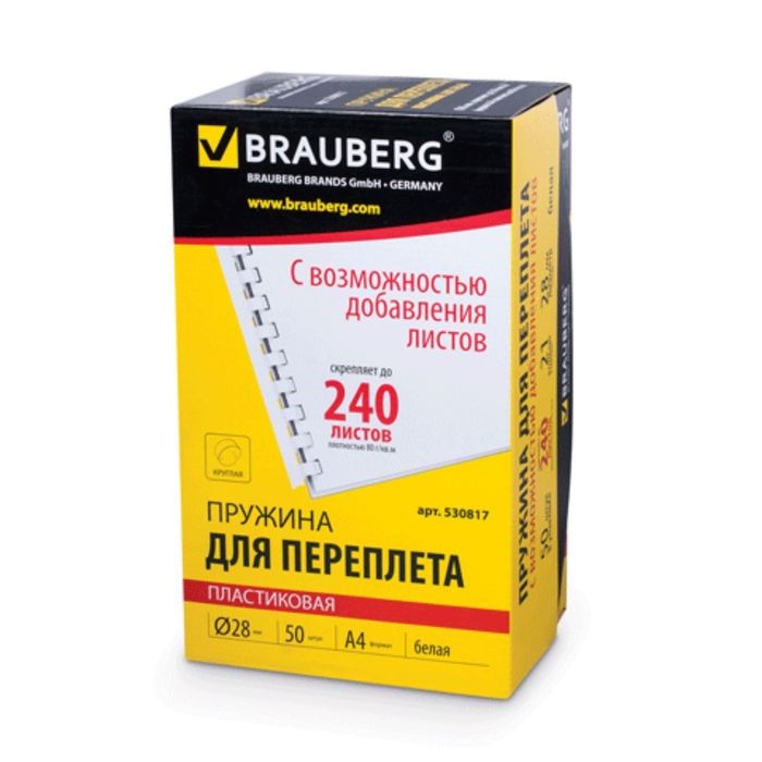 Пружины для переплета BRAUBERG, 28 мм, пластик, белый, комплект 50 штук