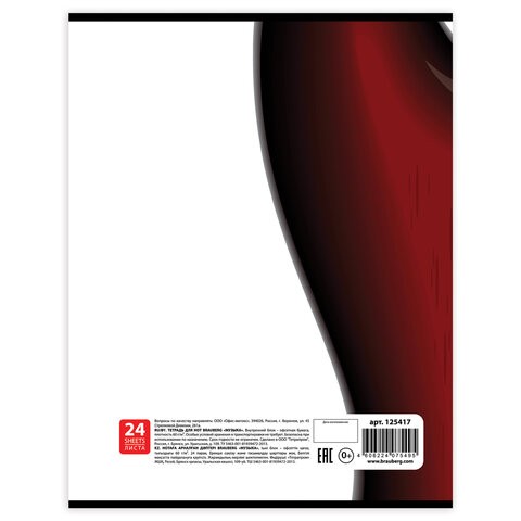Тетрадь для нот А4, 24 л., BRAUBERG "Музыка", вертикальная