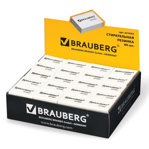 Резинка стирательная BRAUBERG, 26х17х7 мм, белый
