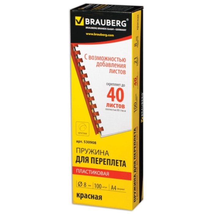 Пружины для переплета BRAUBERG, 8 мм, пластик, красный, комплект 100 штук