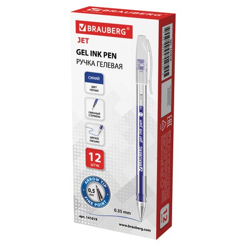 Ручка гелевая BRAUBERG "Jet", узел 0,5 мм, синий