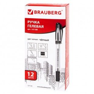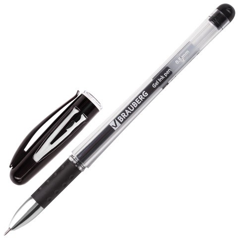 Ручка гелевая BRAUBERG "Geller", грип, игольчатый узел 0,5 мм, черный