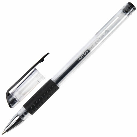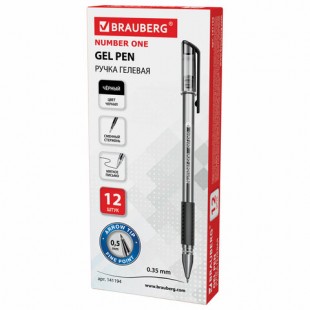 Ручка гелевая BRAUBERG "Number One", грип, узел 0,5 мм, черный