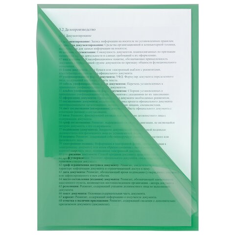 Папка-уголок BRAUBERG, А4, 100 мкм, прозрачный зеленый