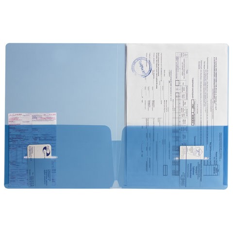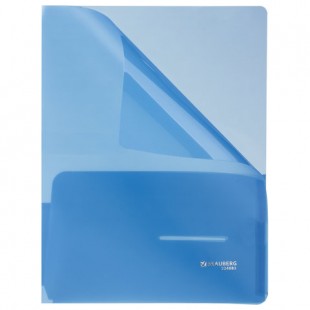 Папка-уголок с 2 карманами BRAUBERG, А4, 180 мкм, синий