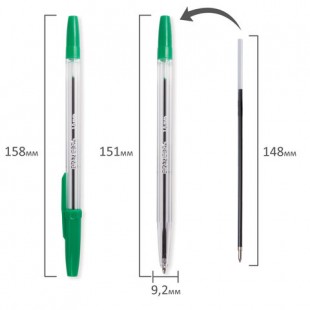 Шариковая ручка с колпачком. Увеличенная длина письма. Сменный стержень.
