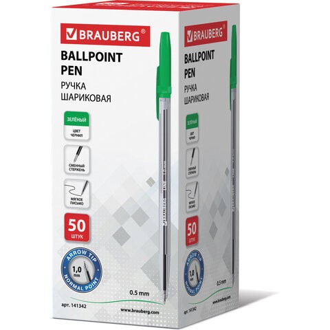 Ручка шариковая BRAUBERG "Line", узел 1 мм, зеленый