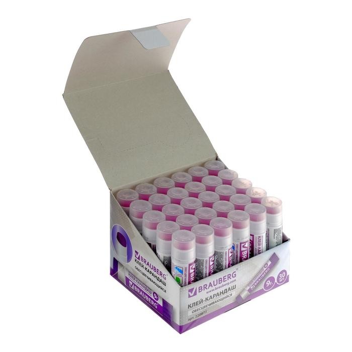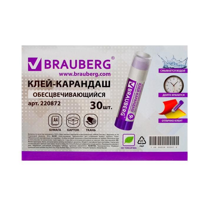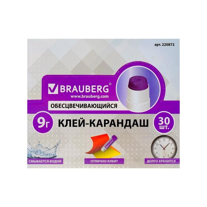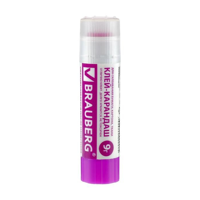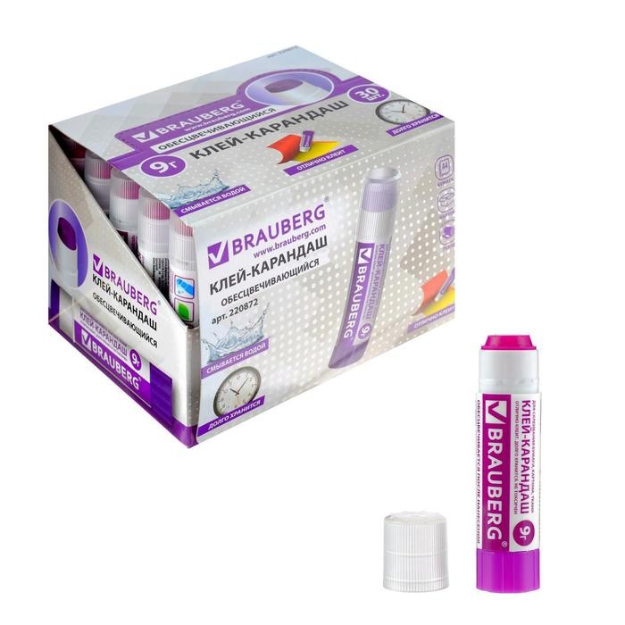 Клей-карандаш BRAUBERG, 9 г, обесцвечивающийся, цветной