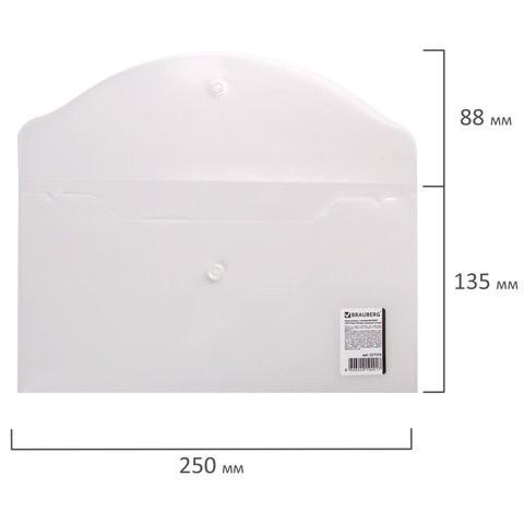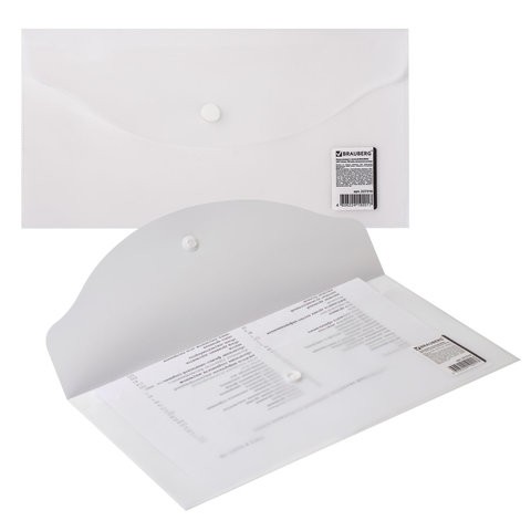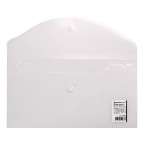 Папка-конверт с кнопкой BRAUBERG, 250х135 мм, 180 мкм, прозрачная, 227316