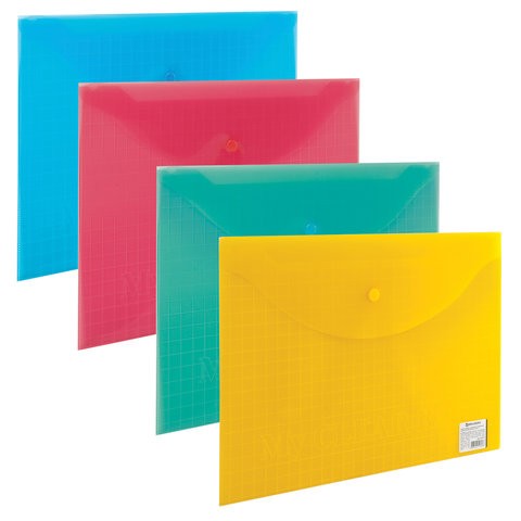 Папка-конверт с кнопкой BRAUBERG "My clear bag", А4, прозрачная, ассорти, до 100 листов, 0,15 мм, 225174