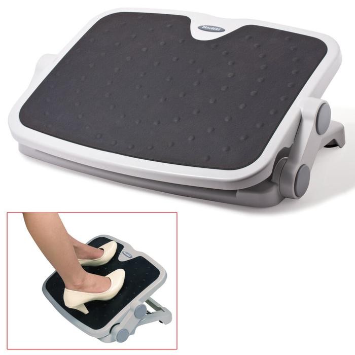 Подставка позволяет снизить нагрузку на мышцы ног, возникающую при длительной работе. Дает возможность располагать стопы в 2-х положениях. Специальная резиновая платформа предупреждает скольжение.