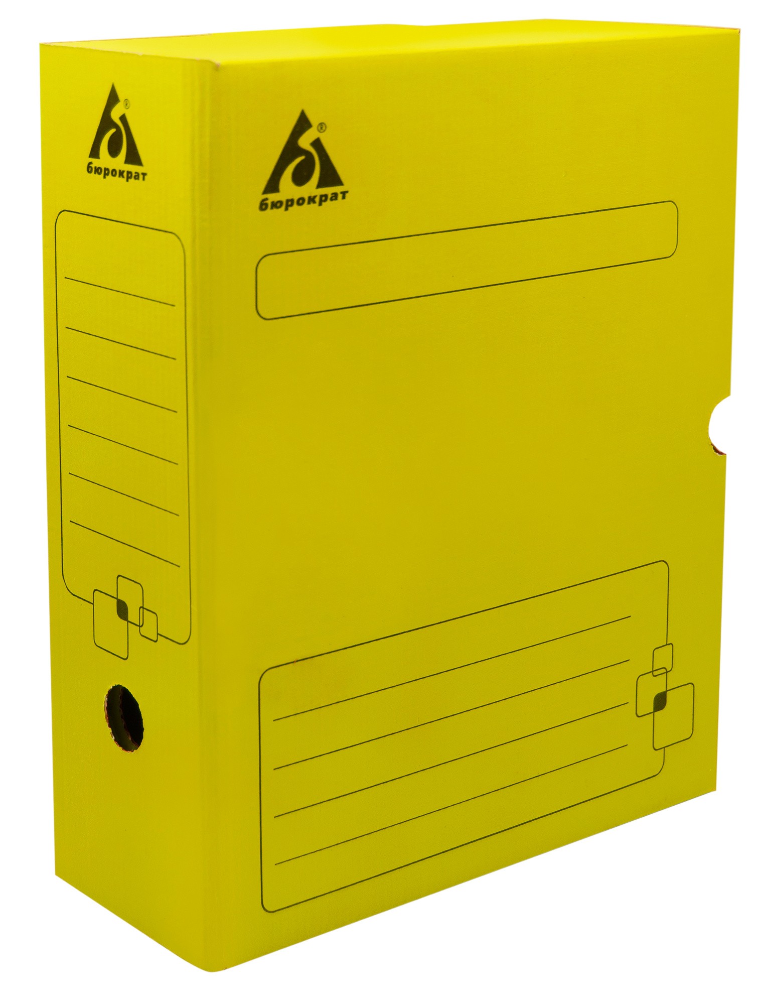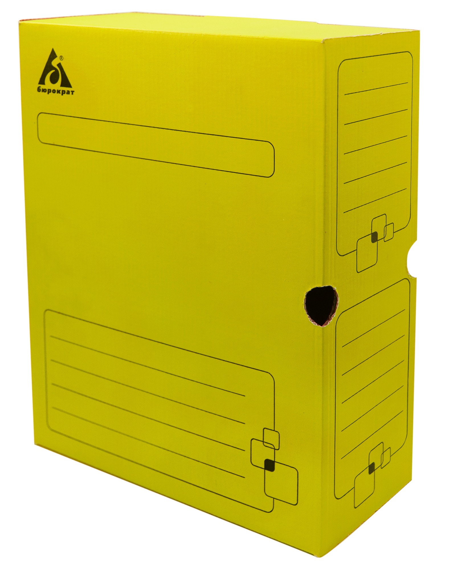 Короб архивный с клапаном БЮРОКРАТ, 100 мм, микрогофрокартон, желтый