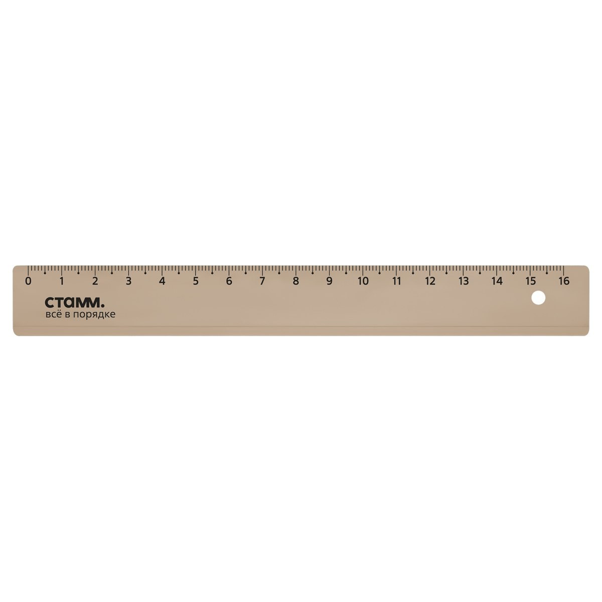 Линейка «СТАММ» предназначена для чертёжно-измерительных работ. Длина шкалы – 16 см, ширина линейки – 21 мм. Изделие имеет безопасные закруглённые края и чёткую контрастную миллиметровую шкалу. Линейка изготовлена из качественного полистирола, и имеет гладкую глянцевую поверхность. Цвет изделия – тонированный коричневый. • Материал: полистирол; • Длина шкалы: 16 см; • Ширина линейки: 21 мм; • Цвет: тонированный коричневый.