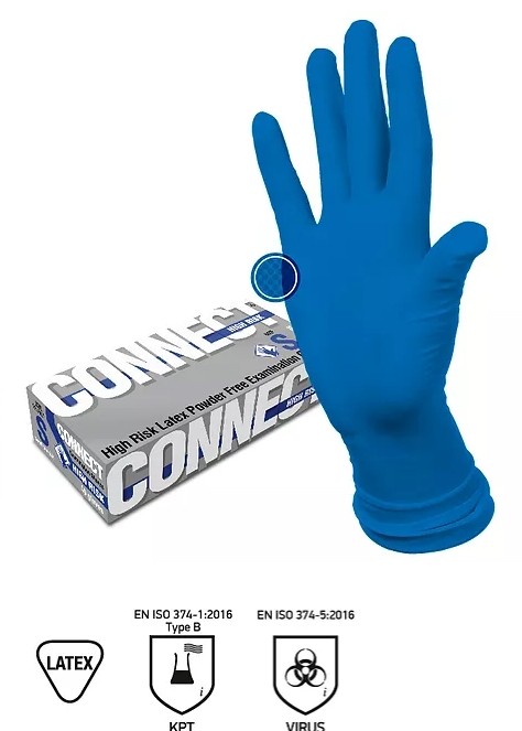 Перчатки латексные смотровые CONNECT "High Risk", размер L, синий, комплект 50 штук (25 пар)