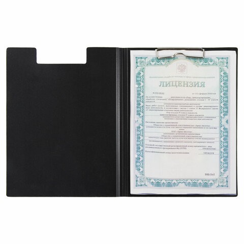 Папка-планшет STAFF позволяет делать записи на весу, а верхняя крышка обеспечивает надежную защиту документов в процессе транспортировке. Отличительные преимущества - легкость и компактность. Выполнена из износостойкого пластика черного цвета толщиной 0,5 мм. Металлический прижимной механизм с верхним расположением обеспечит возможность комфортной работы с бумагами на весу, а крышка позволит надежно защитить документы от негативного влияния внешних факторов. Имеет формат А4 (310х230 мм) и фиксирует до 90 листов.