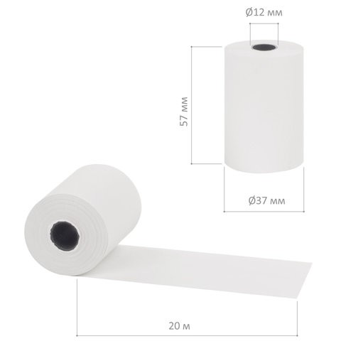 Cостоит из бумажной основы с нанесением на неё термочувствительного химического состава. Рулоны изготовлены на современном оборудовании, обеспечивающем ровную намотку и отсутствие бумажной пыли. Позволяют получить печать высокого качества и продлевают срок службы оргтехники. Чековая лента с наружным термослоем имеет ширину 57 мм и общую длину 20 м. Диаметр рулона - 37 мм, диаметр втулки - 12 мм. Плотность бумаги чековой ленты - 48 г/м2. Поставляется в термоусадочной пленке. 6 штук в комплекте.