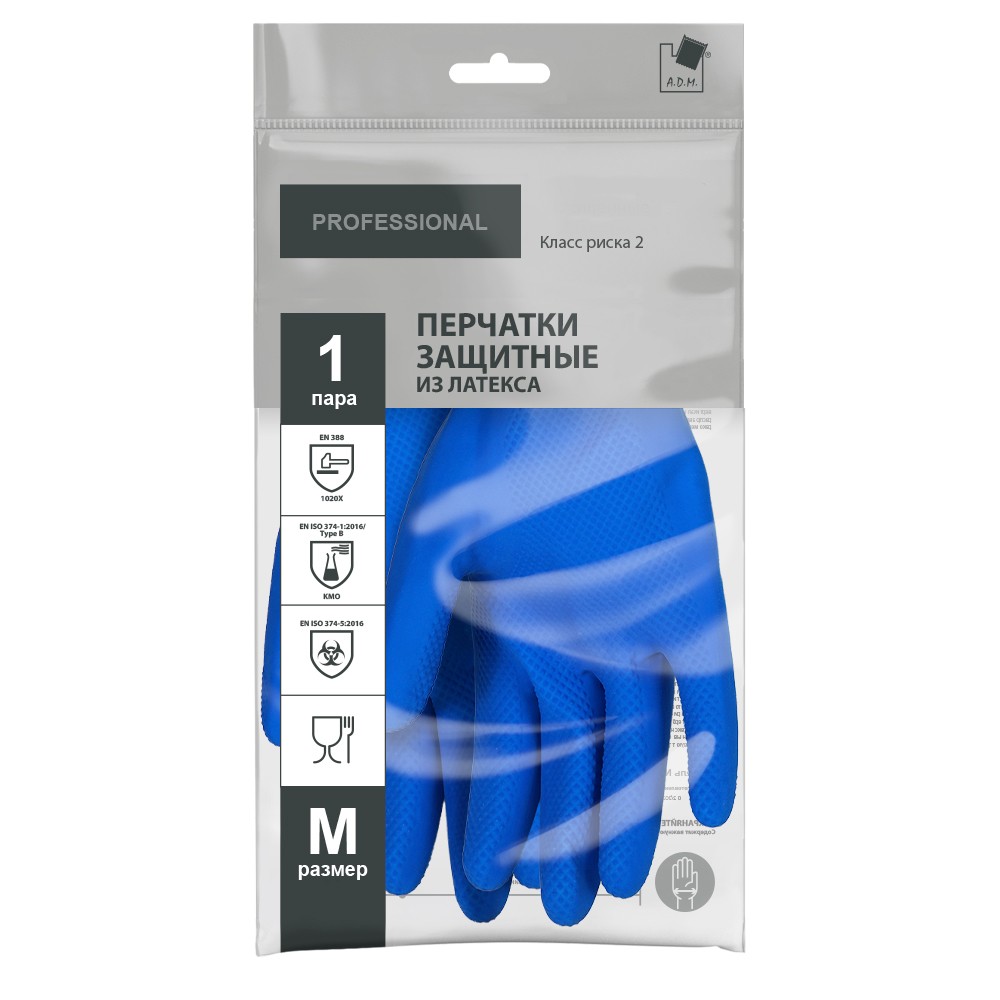 Перчатки хозяйственные ADM Professional КЩС, размер M, латекс, синий